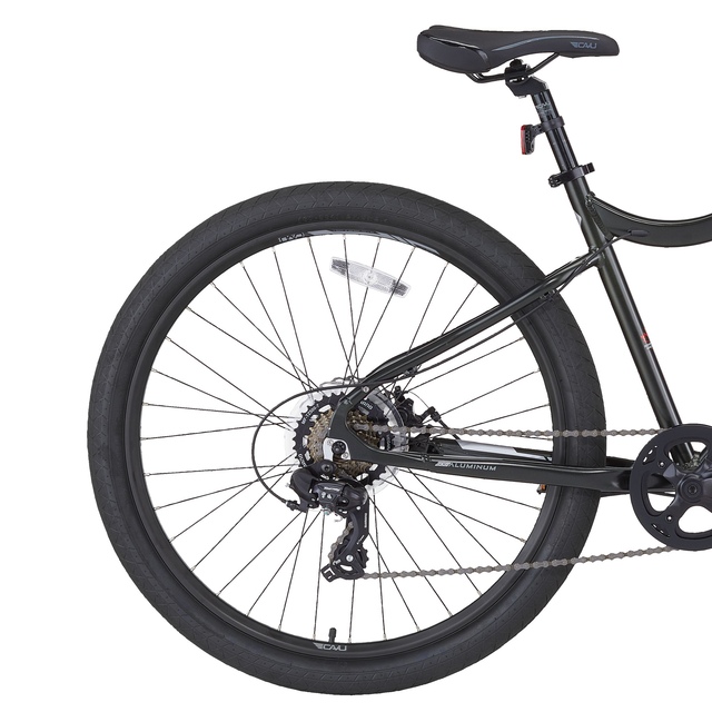 Lightweight 6061 T6 heat-treated aluminum frame provides a smooth, comfortable ride and easy upright riding position