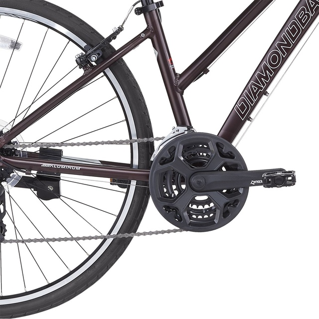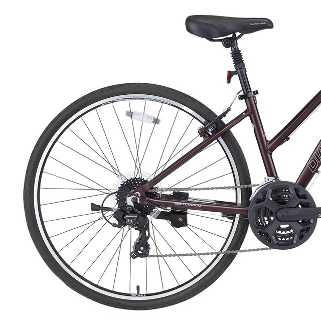 Diamondback's lightweight 6061 T6 aluminum frame features reflective decals for improved visibility and an upright, ergonomic design for a comfortable riding position