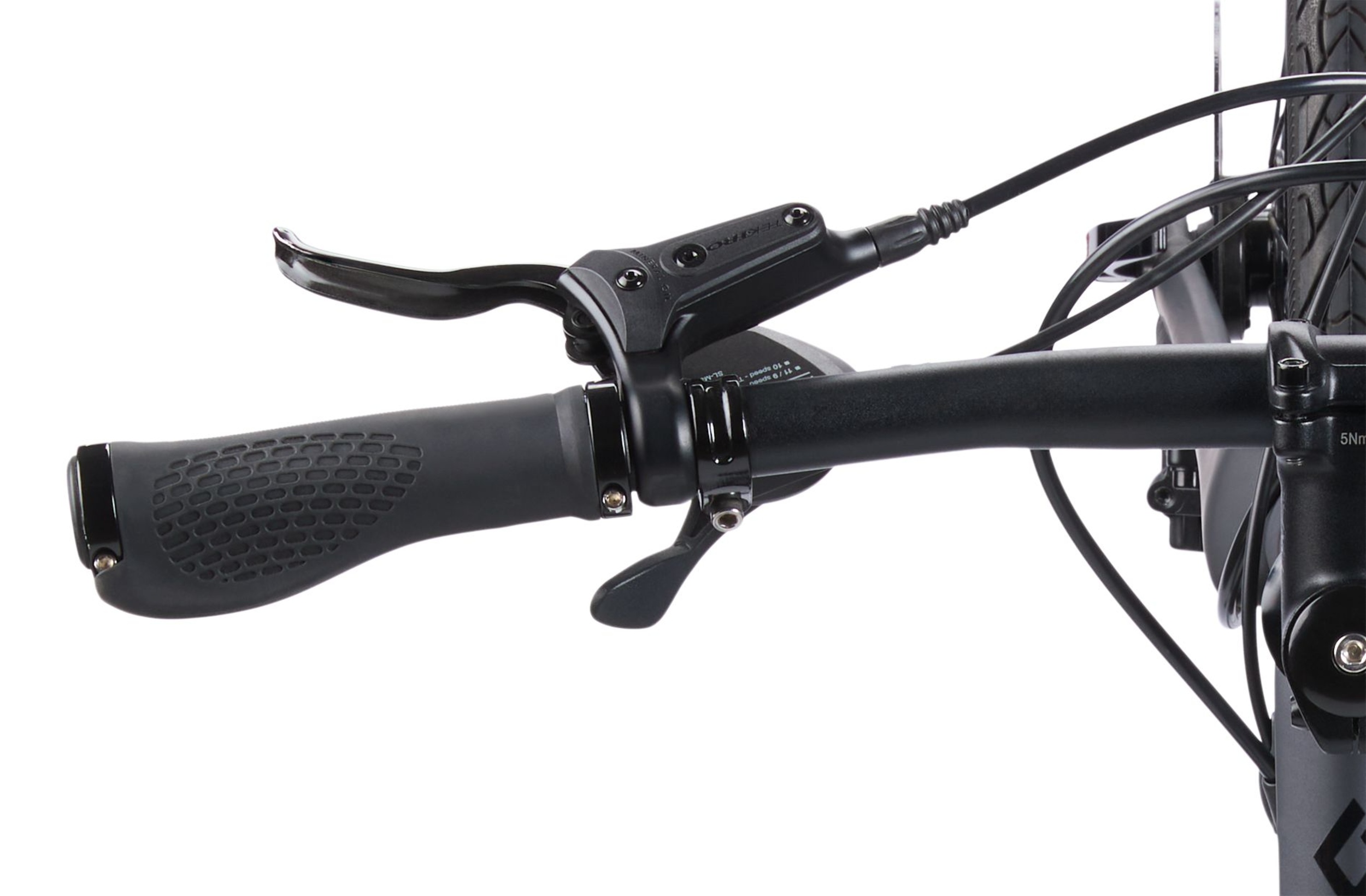Tektro M275 hydraulic disc brakes with 160 millimetre rotors provide excellent stopping power and modulation to control your speed