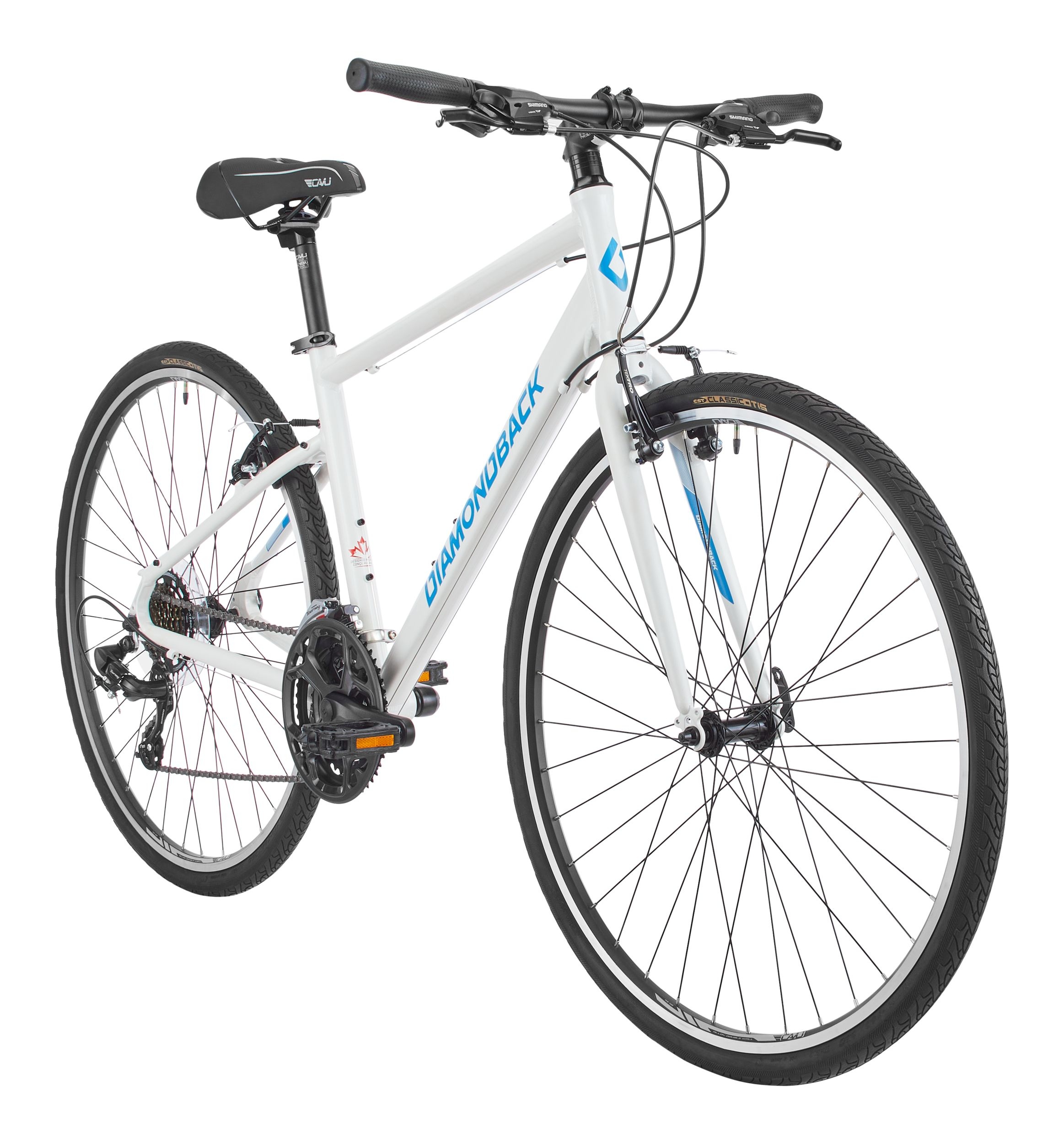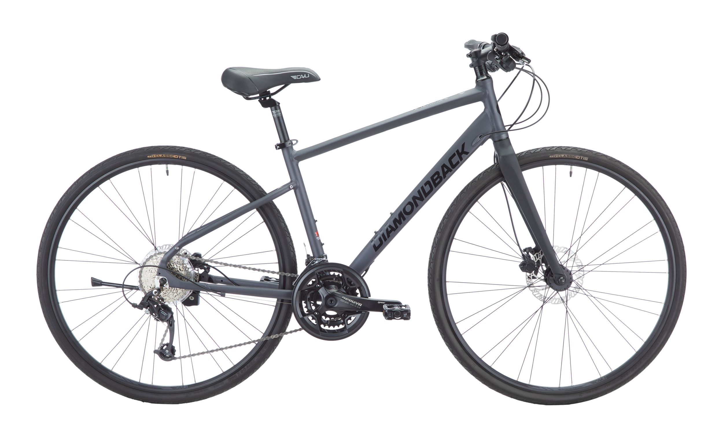 The Diamondback Lachine 3.3 is the ultimate hybrid bike, perfect for city commutes and weekend adventures. Its sporty aluminum frame with internal cable routing, quick-shifting Shimano CUES 18-speed drivetrain, and powerful Tektro hydraulic disc brakes prepare you for any ride. Ergonomic grips, saddle, and touchpoints, along with fast-rolling CST tires, ensure a quick and comfortable journey. Experience efficiency, performance, and versatility with the Lachine.