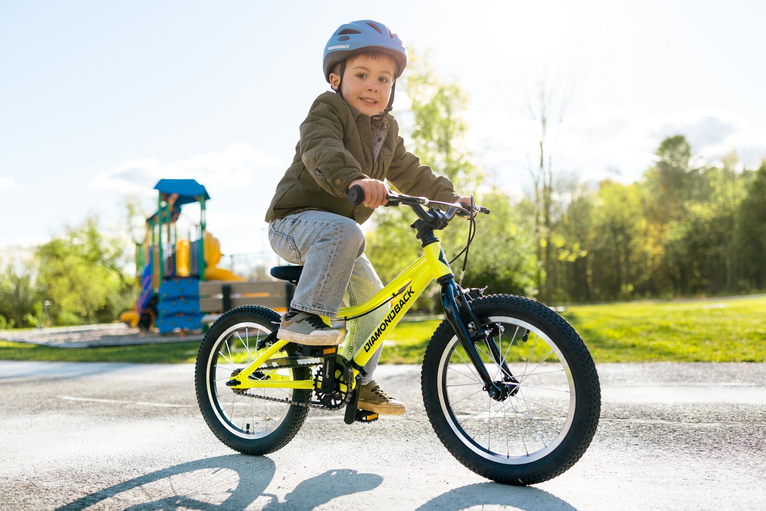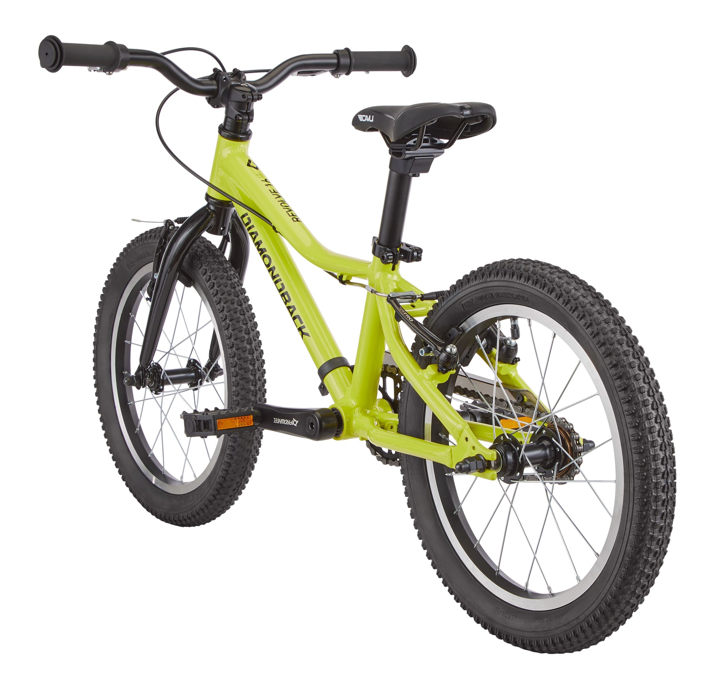 The Diamondback Revolve 16-inch is an excellent choice for young cyclists. The lightweight aluminum frame with carefully considered geometry, quality Shimano components and a single speed drivetrain provides a comfortable and versatile bike that is great for riding bike paths with family and friends. Wide medium tread tires make for a comfortable ride and the Tektro V-brakes ensure reliable stopping power while teaching children the benefits of hand brakes.