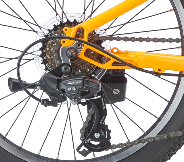 Shimano 6 speed drivetrain with Revo shifter and Tourney rear derailleur allows for easy gear selection while the 14-28T freewheel offers an excellent range of gears