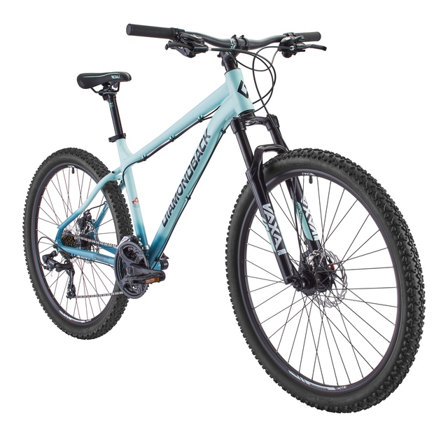 The Diamondback Ridgeback 27.5" Women's Mountain Bike is a great choice for getting out on the trails. The lightweight hardtail design, quality Shimano components and 21-speed drivetrain make for a versatile bike that cruises along bike paths and performs on trails. The 100 mm travel suspension fork soaks up bumps while the mechanical disc brakes provide strong stopping power for a confident ride.