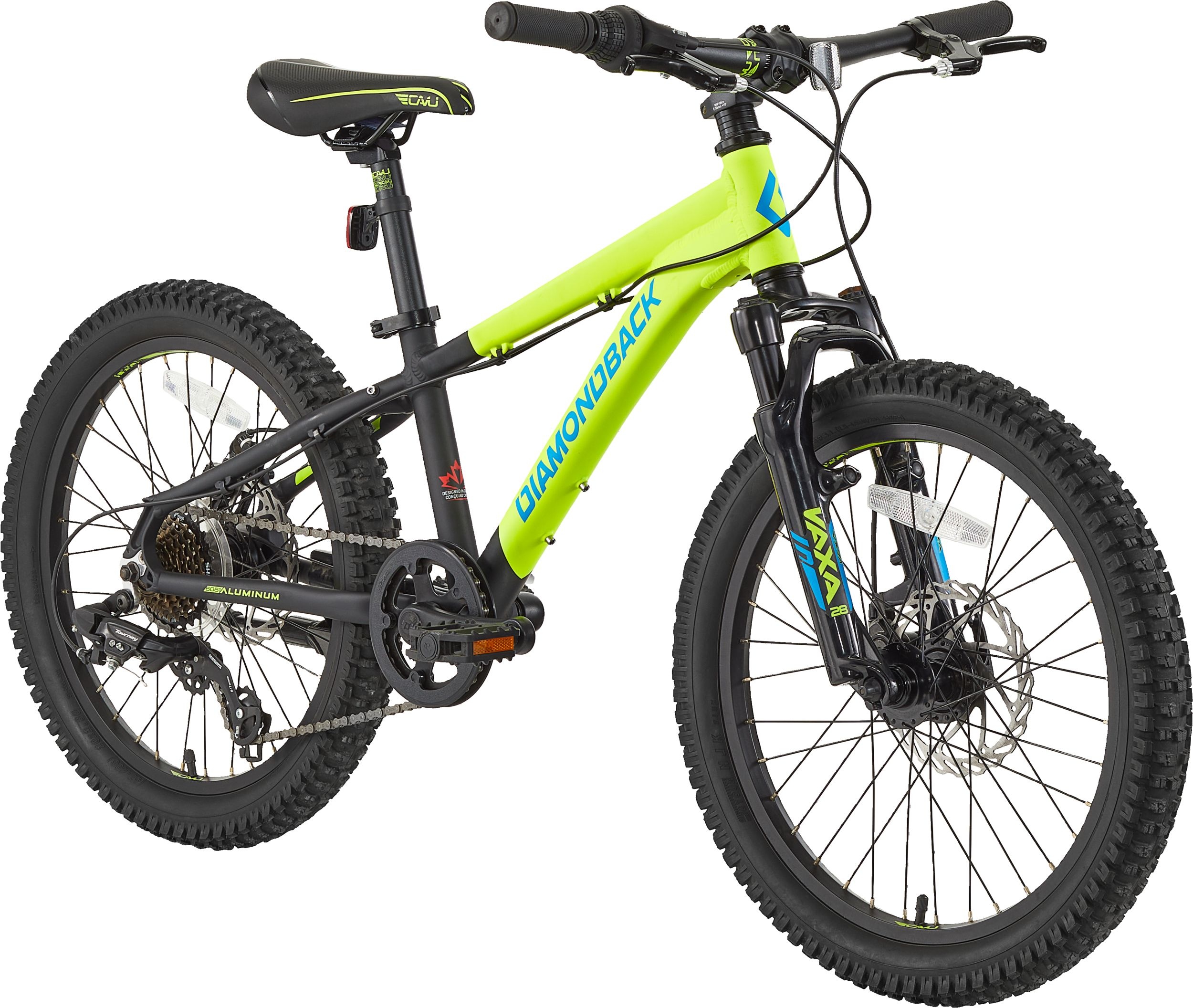 The Diamondback Snake 20" is an excellent choice for the new mountain biker. The lightweight hardtail design, disc brakes, quality Shimano components and 7 speed drivetrain provides the aspiring rider with a versatile bike that is great for all around riding on a variety of trails and also gets them around the neighborhood in style.