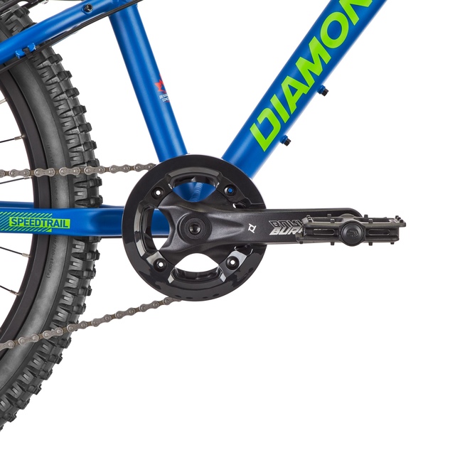 The Diamondback Speedtrail 24" Youth Mountain Bike is the perfect ride for young adventurers. Featuring a lightweight aluminum frame and suspension fork to absorb bumps, it ensures a smooth, confident ride. With reliable V-brakes and a Shimano 7-speed drivetrain, this bike is ready to tackle any outdoor adventure.