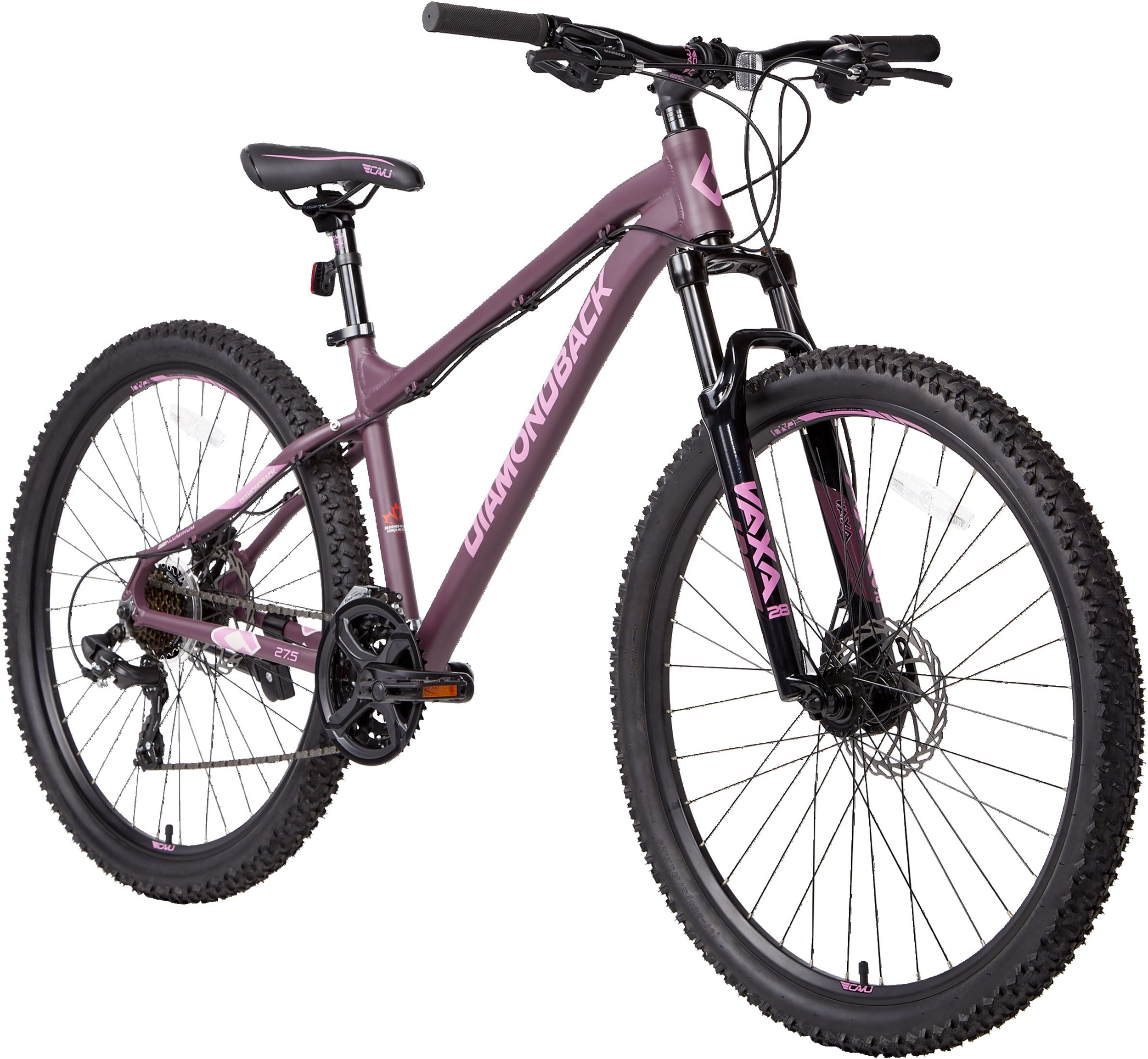 The Diamondback Ridgeback 27.5” mountain bike is a great choice for getting out on the trails. The lightweight hardtail design, quality Shimano components and 21-speed drivetrain provides the rider with a versatile bike that is great for riding around the bike paths and performs well on trails. The 100 mm travel suspension fork and mechanical disc brakes will help soak up the bumps and provide strong stopping power.