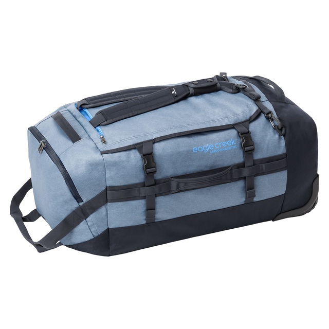Fitted with a grab handle and rubble-smoothing wheels that trolley big loads across docks, campsites and soccer pitches, this duffel dramatically reduces the grunt factor when lugging freight over short distances. Shoulder straps and tuckaway backpack straps offer additional carry options, and reinforced lash points let it ride on roof racks or saddles. When stored, the bag slides into the included stuff sack—which doubles as a packing cube.