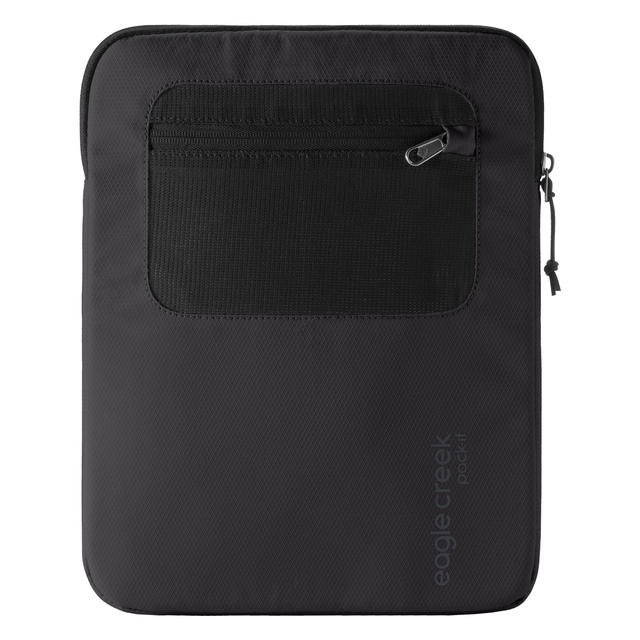 The Eagle Creek Pack-It® E-Tools 12-inch Laptop Sleeve protects a 12-inch laptop with a soft fleece lining and padding to buffer impacts. Its stretch-mesh pocket secures charging accessories. The slim dimensions of this laptop sleeve allow it to fit into compact backpacks and totes for convenience.