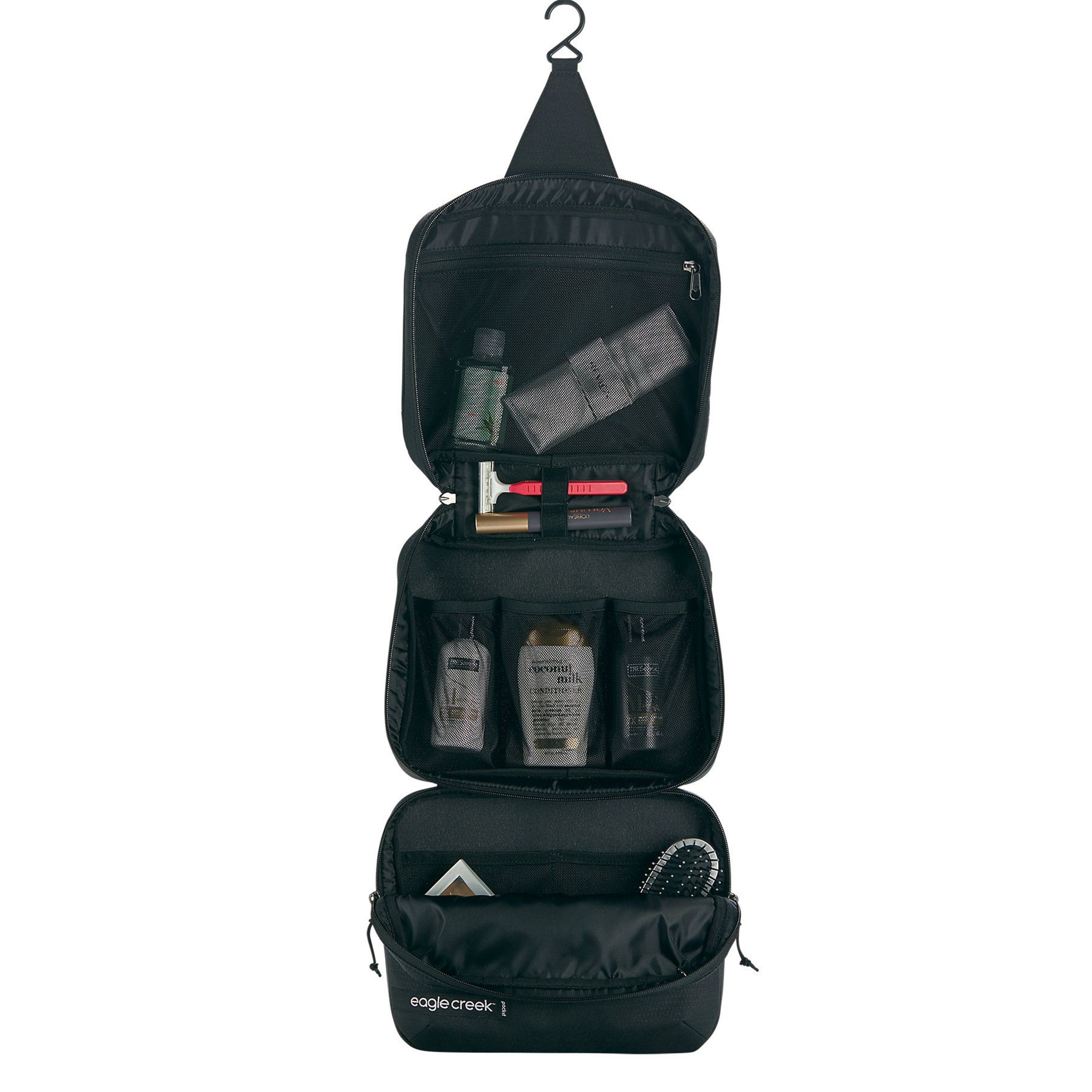 The Eagle Creek Pack-It Reveal Trifold Toiletry Kit offers exceptional organization with three large compartments, internal elastic and secure zip pockets. A durable hanging hook allows for easy access. Made from 100% recycled and bluesign® certified 300D poly, this Eagle Creek toiletry kit features water-resistant, washable fabric and self-repairing zippers.