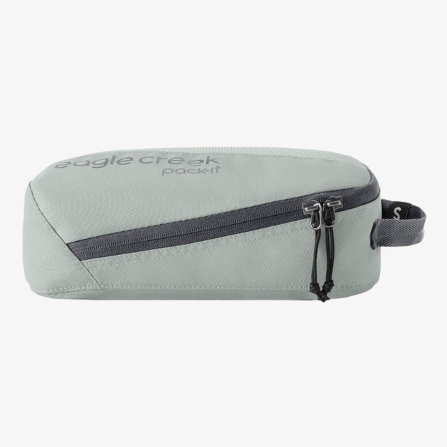 Pack-It Reveal Quick Trip toiletry bag has two compartments, a zippered mesh pocket, and an easy-grab top handle