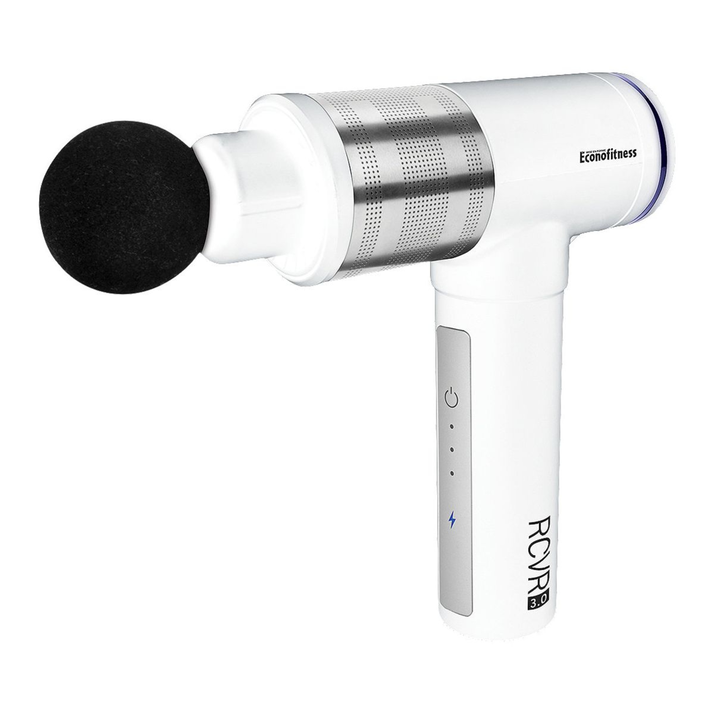 The Econofitness RCVR 3.0 Percussion Massager includes 4 changeable massager heads: round-shaped, mushroom-shaped, U-shaped and conical shaped. Coupled with its powerful motor, this tool provides effective full-body deep tissue massaging. With up to 3.5 hours of battery life, you can give yourself continuous relief to built-up tension in aching muscles. Customize your required level of intensity with the 3-speed setting. The included zipper case conveniently stores the massage gun and massager heads. This massager gun makes the ideal post-workout tool for whenever you need to relieve pain.
