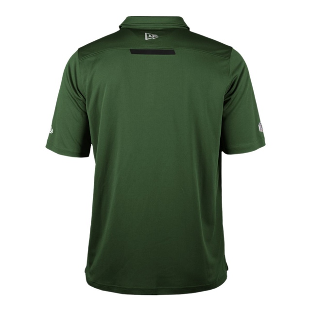 Edmonton Elks Sideline Roster polo shirt. Athletic cut, in poly performance honeycomb mesh. Team color with secondary team color features on placket and centre back between shoulders. Primary logo on front left chest. Also features CFL badge on left sleeve and reflective Official Sideline tab on bottom hem.
