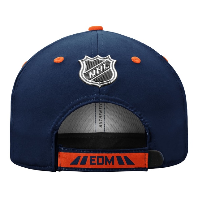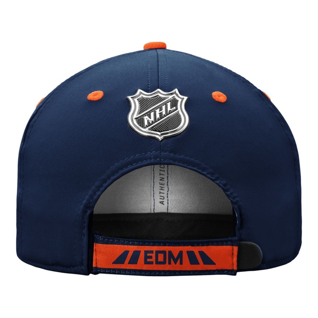 This Edmonton Oilers Authentic Pro Locker Room adjustable hat from Fanatics Branded is just the cap you might see your favorite player wearing post-game. The graphics on the front will make your enthusiasm for their next face-off undeniable. Complete with a hook-and-loop fastener strap for just the right fit, this hat is just the finishing touch your game-day outfit needs.