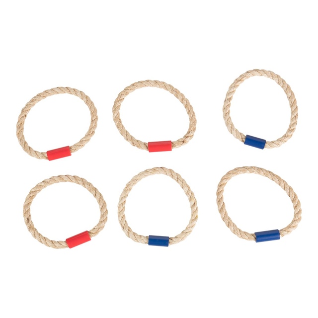 Safe, fun toss game that plays like horseshoes with sisal rope rings