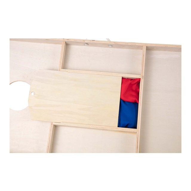 The finest of Triumph's all-wood cornhole sets, the 2' x 4' Woodie Tournament Bag Toss is constructed out of premium grade birch veneer plywood and hand finished with a 7-stage sanding and sealing process. The solid 9mm 48" x 24" plywood play surface has authentic tournament-grade varnish coatings that can be repainted if desired. The WARP RESISTANT PLYWOOD frames also have varnished veneer finishes that reinforce the play surfaces better than solid wood frames for long-term durability. The “Woodie" cornhole set features an interior storage compartment to hold bean bags and keep them from knocking around inside the board when transporting. At 38 pounds, the boards are both stable enough to absorb the impacts of countless bean bags and still manageable to easily transport to every tailgate. Step up to the tournament performance of the Triumph Woodie.