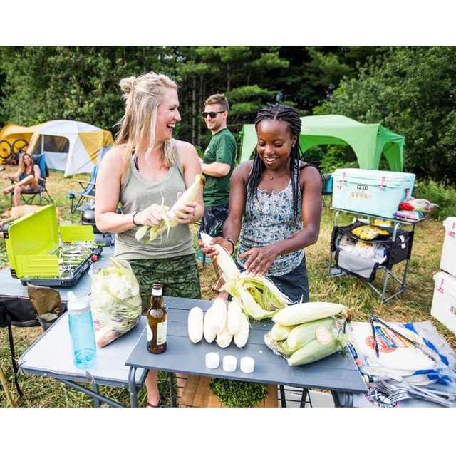 The Eureka Camp Kitchen Table offers generous dimensions yet compact packability for versatile camp cooking. Precisely engineered for an improved cooking experience, it features adjustable anti-rocking feet for a level surface on uneven ground. Multiple platforms keep your camp stove, food, and accessories organized.