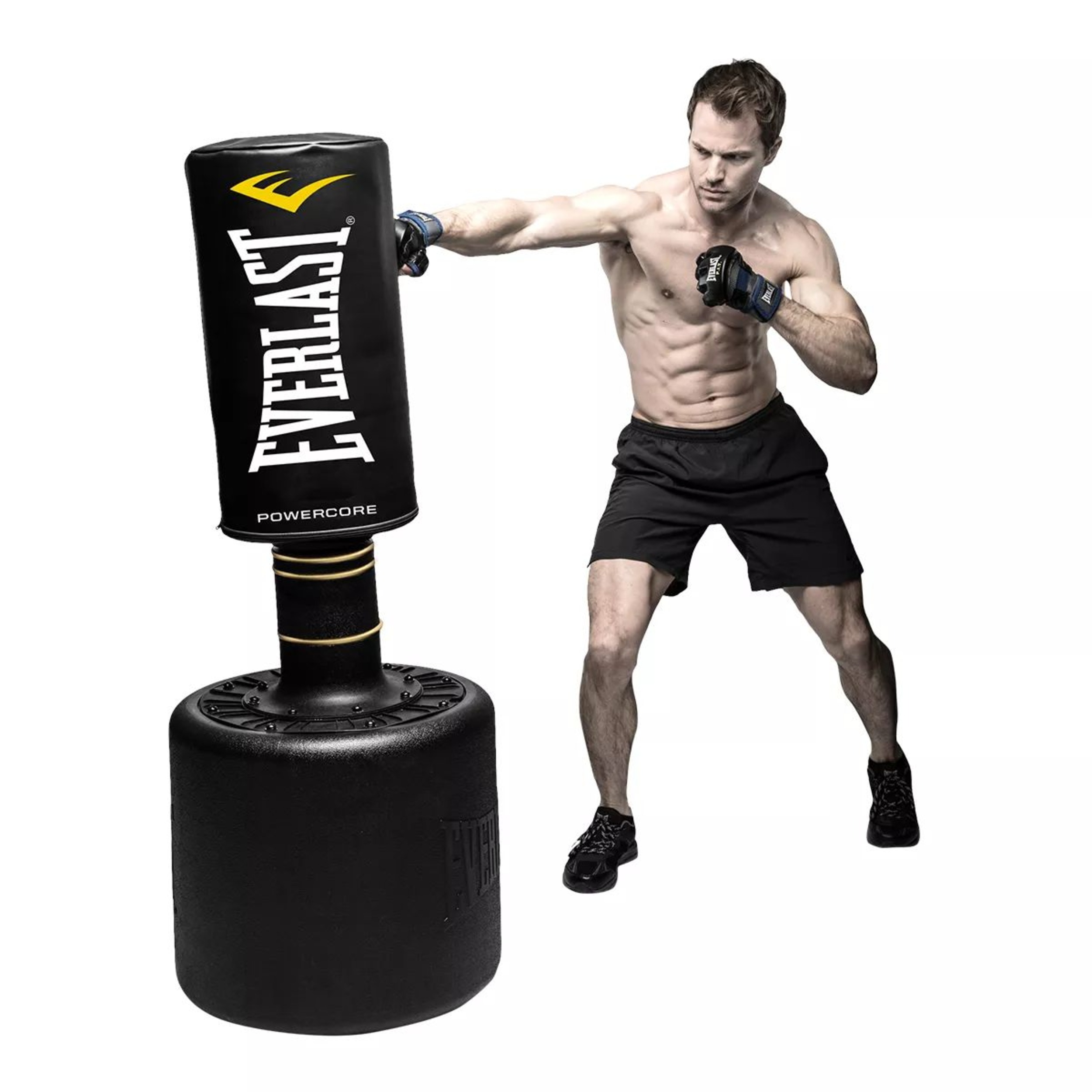 Perfect for home or commercial use, the Everlast Powercore Free Standing Heavy Bag helps you get in shape and knock out the competition. Its innovative tri-disc foam structure disperses up to 100% of each strike's energy, reducing stress on your joints. Additionally, the compact and portable base can be filled with either water or sand to ensure the Everlast free standing heavy bag stays in place.