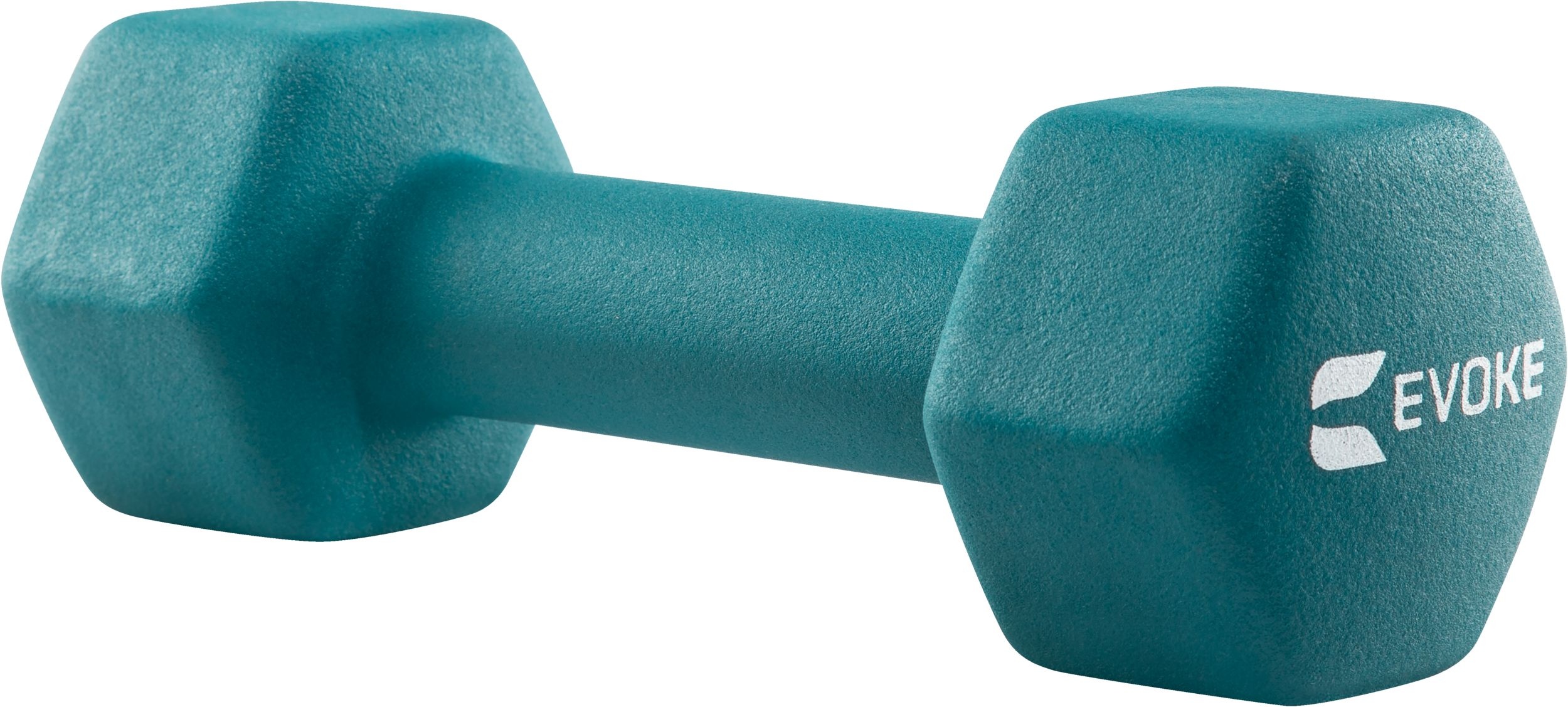 EVOKE NEOPRENE DUMBBELL 10LBS.Explore the wide variety of exercises available to you using these durable neoprene kettlebells. The neoprene covering protects your floors and workout space and the wide handles comfortably fit all hand shapes and sizes.