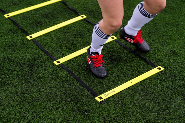 Take your footwork to the next level with the EVOKE Agility Ladder. Great for solo sports training and team drills, the ladder aids in balance, eye-to-foot coordination, conditioning and reaction time. Use it to do side steps, in and outs, crossovers and other drills. The ladder folds up for easy transport, so you can train hard anytime, anytime, anywhere.