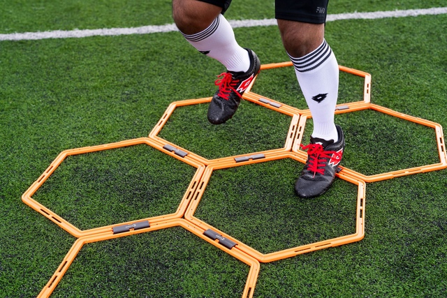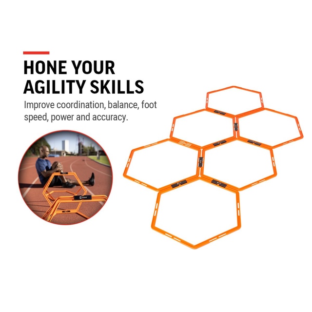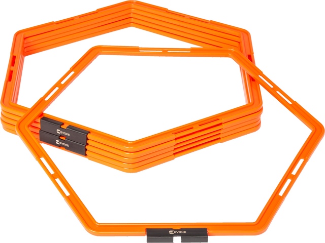 Bring versatility to your workout with EVOKE Agility Rings. Used to improve coordination, balance, foot speed, power and accuracy, these sturdy rings can be arranged in numerous configurations to add variety to your training sessions. Clip them together for fast footwork, set them apart for bounding drills, create bumps for jumping, and much more. A great fit for sports training and team drills, they're easy to transport, set up and take down, so you can hone your agility skills anytime, anywhere. These EVOKE Agility Rings include connector clips.