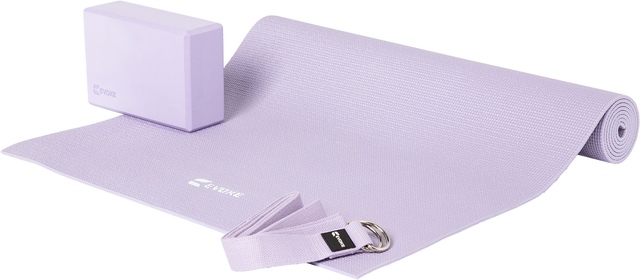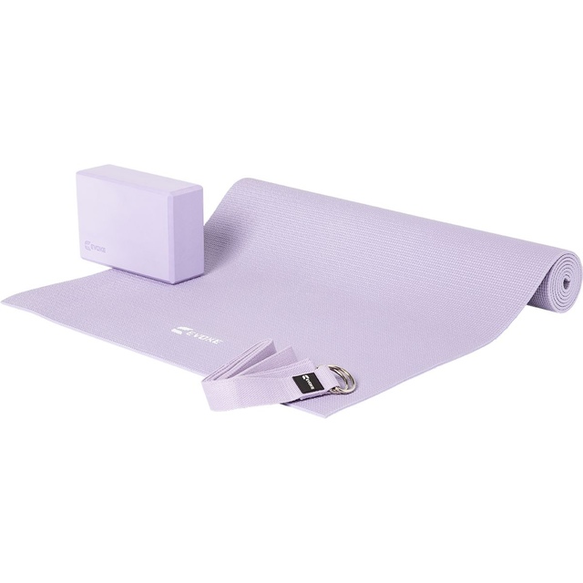 The Evoke Beginner Yoga Set is designed to support those getting started on their yoga journey. Made for versatile use, this yoga starter kit comes with three helpful tools to focus on practicing without distraction. Included are a 5mm thick yoga mat with a textured surface for cushioning and traction, a light yet sturdy block to assist with proper alignment, and an adjustable strap to hold and deepen stretches. This practical yoga set provides a firm foundation at home or in the studio.