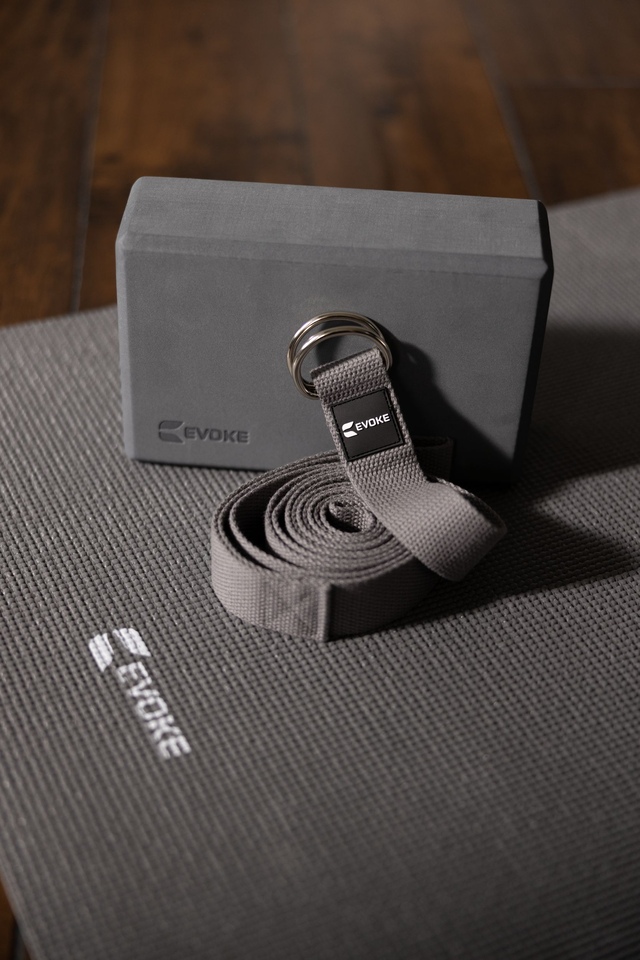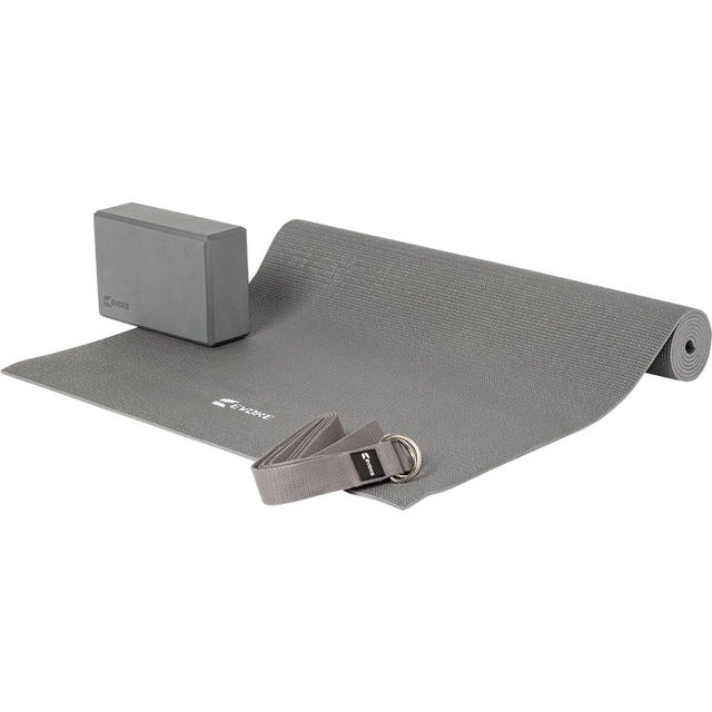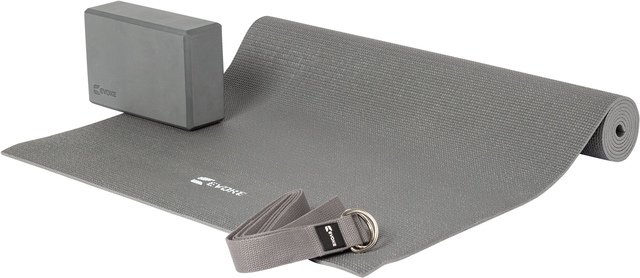 The Evoke Beginner Yoga Set is designed to support those getting started on their yoga journey. Made for versatile use, this yoga starter kit comes with three helpful tools to focus on practicing without distraction. Included are a 5mm thick yoga mat with a textured surface for cushioning and traction, a light yet sturdy block to assist with proper alignment, and an adjustable strap to hold and deepen stretches. This practical yoga set provides a firm foundation at home or in the studio.