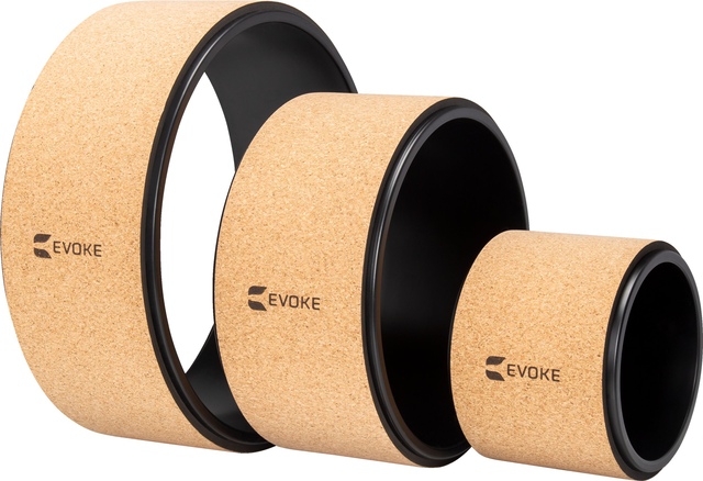 Enhance your yoga practice with an EVOKE Cork Yoga Wheel Set. Each yoga wheel helps you fully stretch your body, allowing you to open your back and chest and relieve discomfort. The wheels let you move safely into deeper postures and offers stability when balancing and holding difficult poses. They feature a comfortable, non-slip outer cork layer supported by a sturdy plastic core. Whether stretching tight muscles, improving flexibility or looking for support to tackle more complicated yoga poses, this EVOKE Cork Yoga Wheel Set provides a firm foundation at home or in the studio.