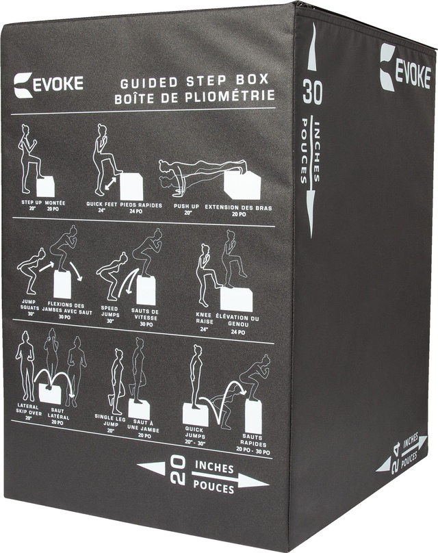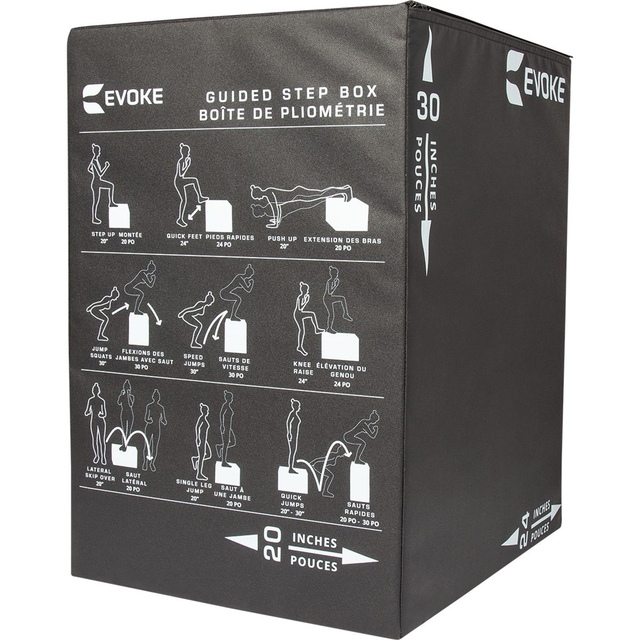 Step up your fitness routine with the EVOKE Guided Step Box. An innovative training tool, it provides a sturdy yet soft, non-slip surface for box jumps, step-ups, planks, push-ups and more. The foam step box features guided instructions and three height options, so you can elevate your full-body workout. When it's time to train, the EVOKE Guided Step Box helps you sweat your way.
