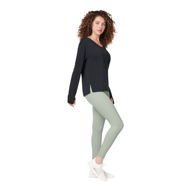 This long sleeve tee is designed in a natural fit with side slits and slight drop tail on the back for a relaxed flowing look. Comes with thumbholes to keep the sleeve firmly in place and your hands warm on those chilly days.