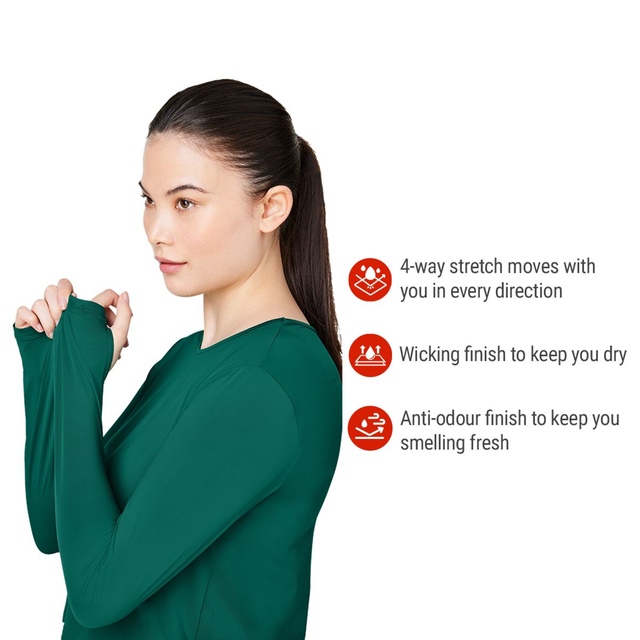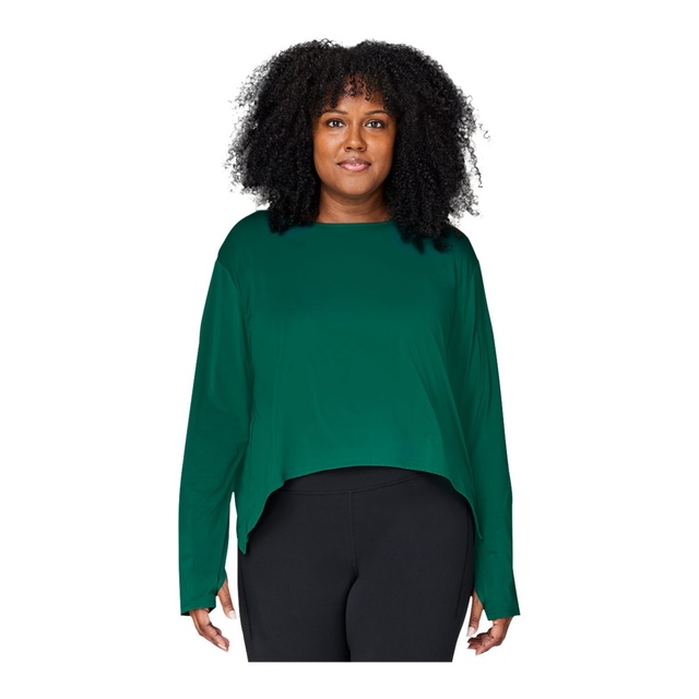 The FWD Women's Plus Size Push Active Flow Long Sleeve Shirt is perfect for an active lifestyle with maximum movement. Run, lift, or train in this anti-stink top that keeps you smelling fresh for the next rep. The incredible comfort, perfect stretch, and silky soft fabric of this go-to performance gear are ready for a happening day in and out. 4-way stretch provides a secure and fine fit for a vigorous session at the gym.