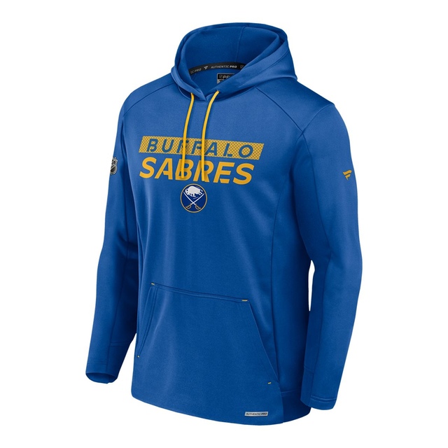 Show your team pride with the Fanatics Buffalo Sabres Authentic Pro Rink Poly Fleece Hoodie. Crafted from soft poly fleece, it features official team colours and branding that mirror the style worn by NHL players. Stay warm and stylish while supporting your favourite team in this officially licensed hoodie.