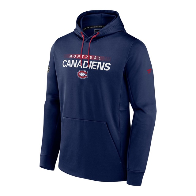 The Fanatics Montreal Canadiens Authentic Pro Rink Hoodie showcases your team spirit with screen-printed graphics across the chest. This midweight hoodie features a front pouch pocket and a drawstring hood with rubber stays for an adjustable fit. Officially licensed by the NHL, this pullover hoodie allows fans to showcase support for their favourite hockey team with an authentic and stylish design.