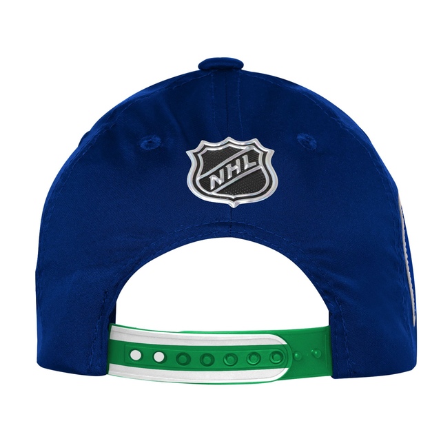 Show your support for the Vancouver Canucks with the Fanatics Youth Vancouver Canucks Draft Podium Adjustable Hat. It features a structured six-panel design and an adjustable snap closure for a secure, comfortable fit. With detailed embroidery and team patches, it’s the perfect accessory for young fans.