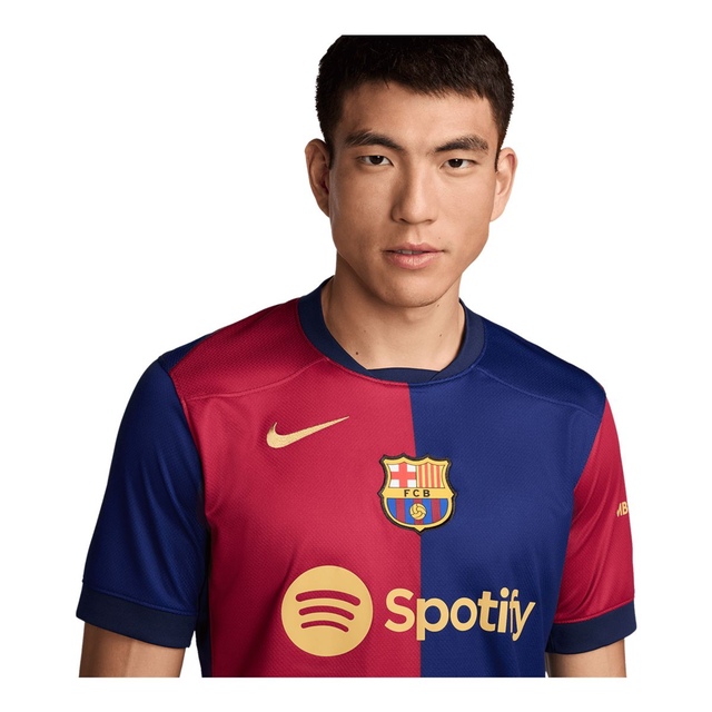 The FC Barcelona Nike Replica Home Jersey captures the authentic look of the jersey worn by the legendary Spanish football club. Made with Nike's innovative Dri-FIT technology, this 100% polyester jersey wicks away moisture to keep you dry and comfortable during intense matches or training sessions. Its replica design replicates the details found on the official team jersey, ensuring you'll look and feel like a part of the renowned FC Barcelona squad.