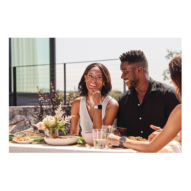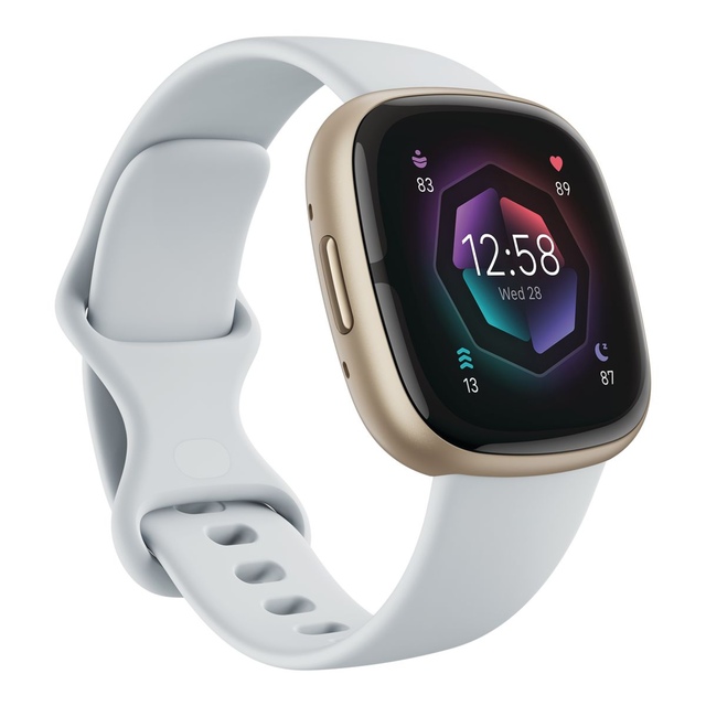 Sleek and stylish, the FITBIT Sense 2 Smartwatch offers stress management through an EDA sensor and a personalized Sleep Profile to enhance rest. Features include heart rate, SpO2 and temperature monitoring, built-in GPS + GLONASS and water resistance up to 50m. Comes in Blue Mist/Soft Gold Aluminum with a premium silicone band.