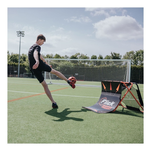 The Flick Urban Skills Trainer is the number one piece of equipment you need for your yard or soccer club. The unique design is scientifically proven to improve your core skills by up to 73%. Pass the ball to the front ramp and watch the ball come back to you at different heights and angles. Use the rebounder net on the reverse side to improve your touch and control or use the net in the middle of the trainer as a target to help your accuracy. The tunnel that runs through the rebounder ensures your passing improves over time. The Urban Skills Trainer has been designed to be used individually but has also helped hundreds of soccer coaches develop players at the academy and professional levels. The double-sided rebounder is perfect for players of all abilities and provides the perfect mixture of training and fun. When you’re finished with your Skills Trainer, simply fold it down flat and store it in its very own carry bag.