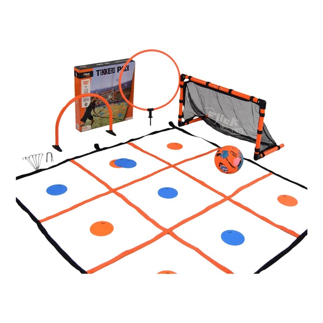 Tekkers Pack is the ultimate soccer pack for serious training and endless fun. Use the 3 x 3 square grid to start playing Tic-Tac Tekkers, Football Flick’s take on the popular game but this time using a soccer ball and your skill. Challenge your friends, family or team-mates and see who can become the king or queen of the grid. When you're finished using your Tekkers Grid on the ground, simply hang it from any goal and you have an instant target sheet. Tekkers Pack also comes with a mini goal, specially designed high-grip Tekkers Ball and 2 target hoops to help improve your accuracy further. Tekkers Pack comes with a carry bag for easy storage and transportation.