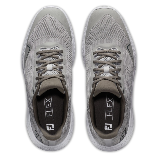 The FootJoy Men's Flex Sneaker Spikeless Mesh Golf Shoes offer incredible traction and performance on-course with the off-course versatility of a sneaker. These spikeless golf shoes feature a lightweight construction with performance mesh, a cushioned EVA midsole, and the VersaTrax outsole for all-day comfort, underfoot cushioning, and maximum traction. With a toe spring and a slightly narrow heel, these golf shoes sport an athletic profile.