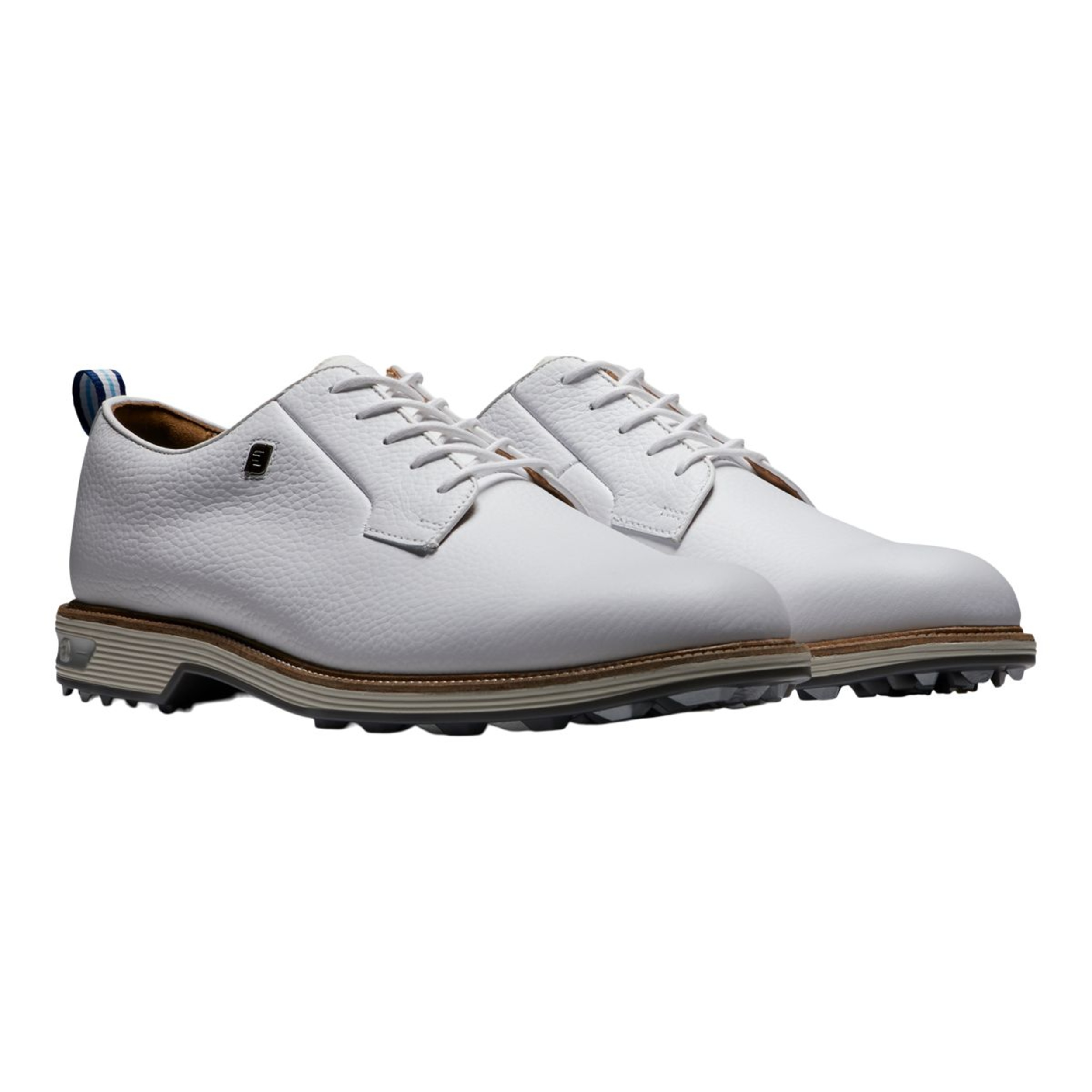 The FootJoy Men's Premiere Field Spikeless Waterproof Golf Shoes are inspired by the past but supercharged for the present. These spikeless golf shoes offer timeless style to players seeking classic golf footwear. The premium leather detailing delivers an iconic look, while translucent rubber traction elements offer a high-end look and feel. FootJoy warrants that these golf shoes will be 100% waterproof in normal use for 2-years.