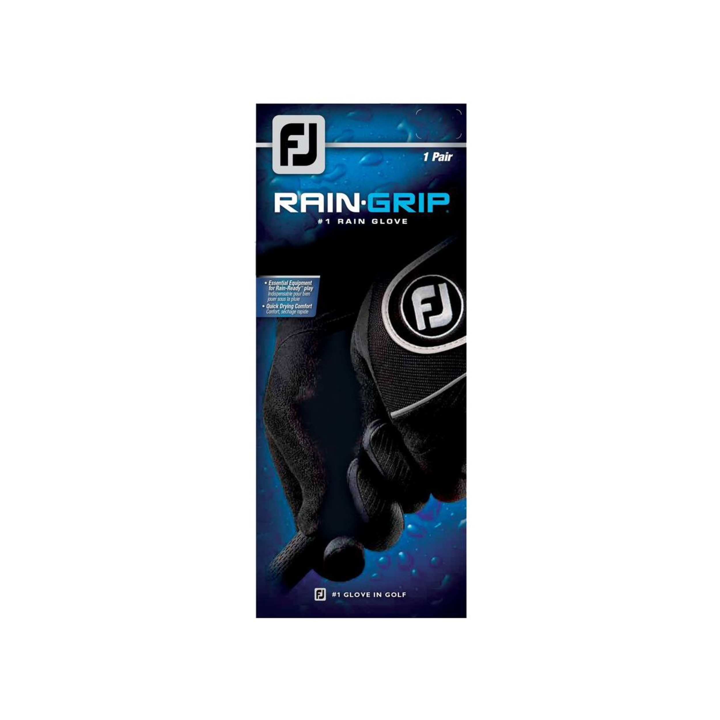 The Footjoy RainGrip Golf Gloves are the number one men's golf rain gloves, providing essential equipment for rain-ready play. Designed with QuikDry™ knit material along the back of the hand and fingers, these gloves offer optimum breathability, flexibility and quick-drying comfort. The Autosuede™ knit palm conforms to both your hand and club, delivering an unmatched grip in wet or humid conditions for a secure hold and maximum control.