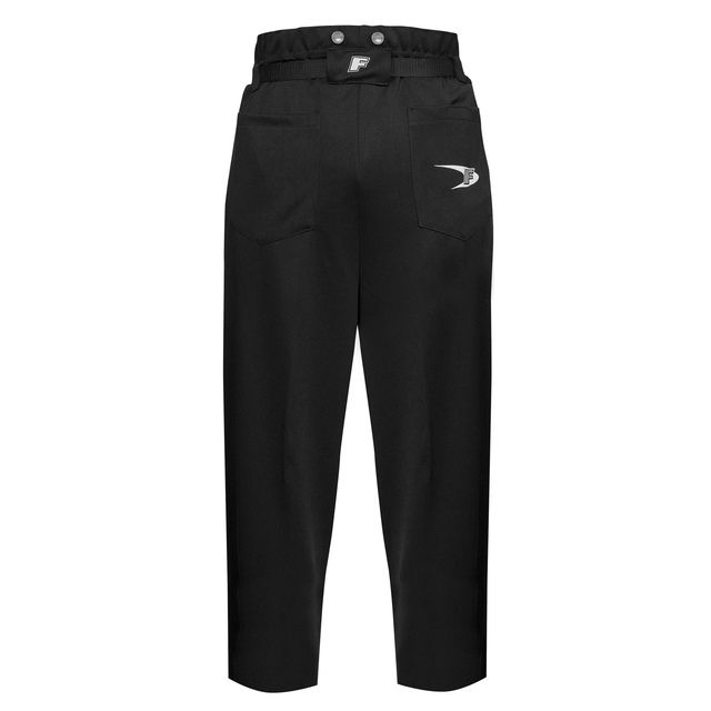 Perfect for the recreational referee. 100% polyester heavyweight doubleknit with two deep slash pockets for ease of access and room for extra whistles. Also includes two back pockets (1 with Velcro), suspender buttons, nylon belt.