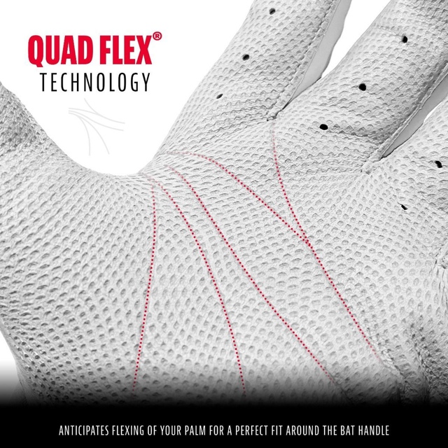 QUAD-FLEX creasing decreases material buildup between your hand and the bat handle
