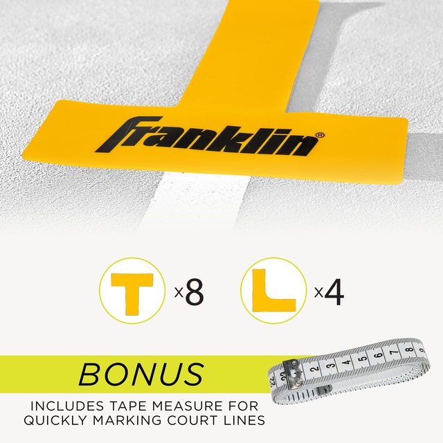The Franklin Pickleball Court Marker Kit easily transforms any court area into a pickleball court. The kit includes four L-shaped and eight T-shaped flexible pickleball court markers that can be easily transported from court to court. The easy-care material is surface-wipeable for quick cleanup, and the bright color clearly identifies the court lines.
