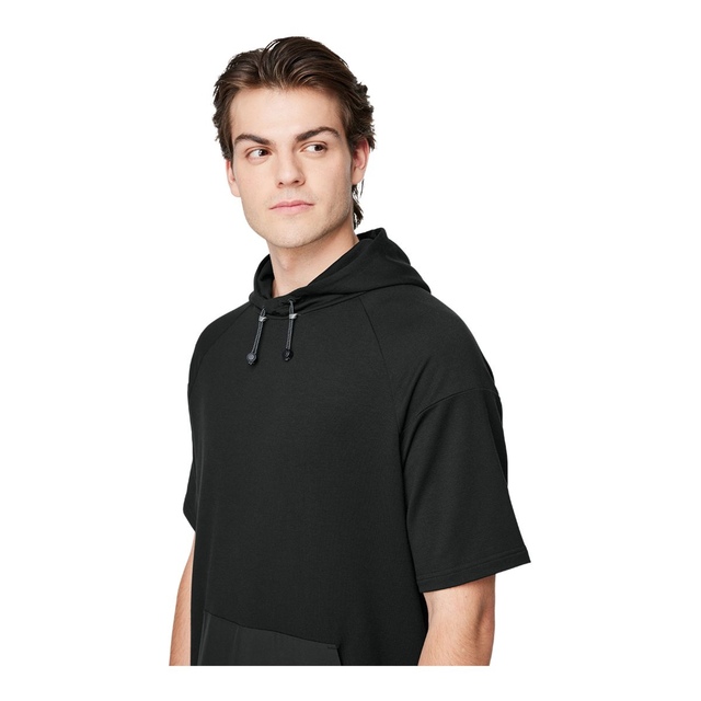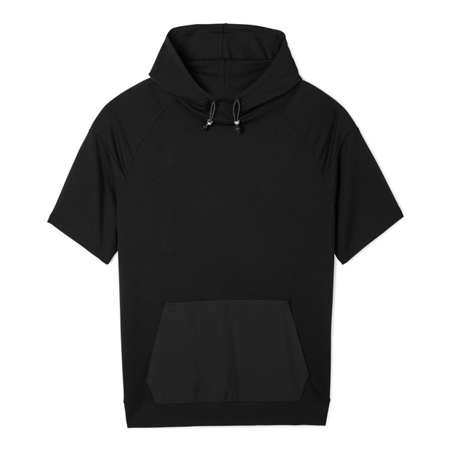 It’s a hoodie with a style twist! This short sleeve French Terry, pullover is the perfect go-to staple all year round. You can wear it as is or layer it over your favorite tee, with a shock cord closure for a customized hood fit and a front woven pocket for keeping essentials conveniently. The fabric has a built-in moisture-wicking and anti-odor finish to help you feel clean and dry while having fun!
