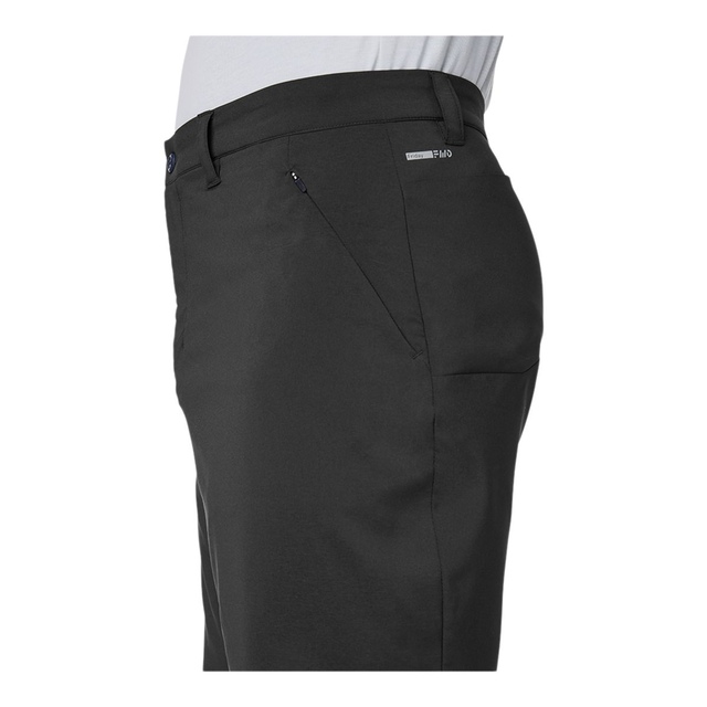 Zipper front fly and belt loops provide a secure, adjustable fit