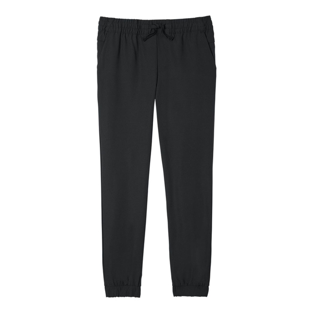 Jogger style with elastic waistband and cuffs provides all-day comfort