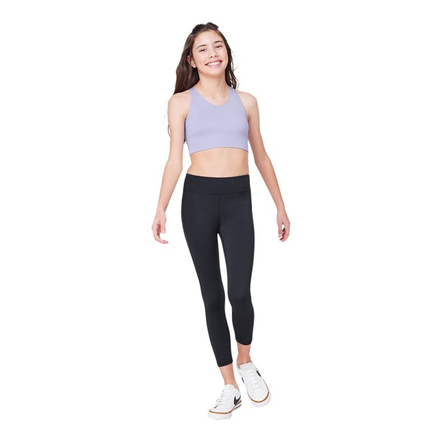 These FWD Girls' 7/8 Leggings are a flexible mixture of comfort, sustainability and style. The flattering high-waisted design offers comfortable coverage and excellent moisture-wicking properties help keep her feeling cool and dry during any activity. Perfect for the eco-conscious and active young individual, these form-fitting FWD tights are made with recycled content.