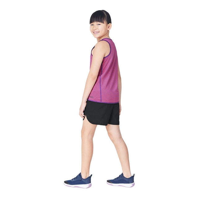 The FWD Girls' Reversible Mesh Tank offers sporty style and cool comfort for her daily activities. Its reversible design allows her to switch between patterns to suit her mood, while the breathable construction ensures airy, comfortable wear.