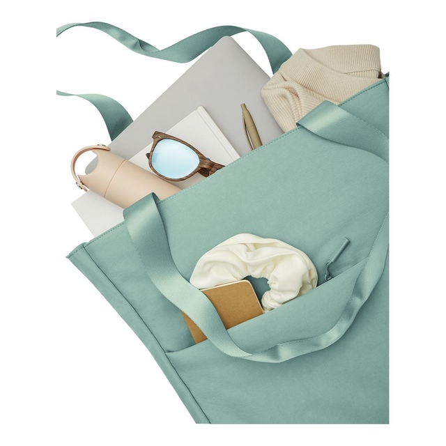 The FWD Hold All Expandable Tote Bag combines functionality with sustainability. It features a secure zippered opening, an interior pocket for organization and a 100% recycled polyester lining. This FWD bag has a spacious main compartment, an external zippered pocket and dedicated internal and external water bottle holders for practical, everyday use.