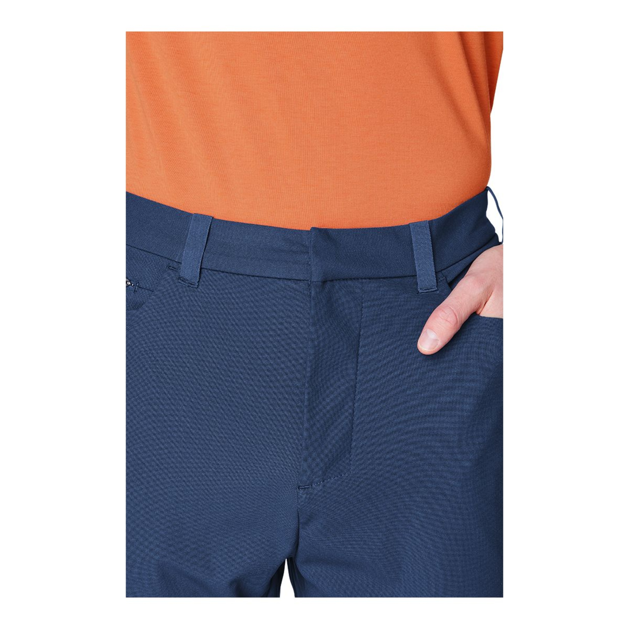 Zip front with belt loops offers classic style and comfort